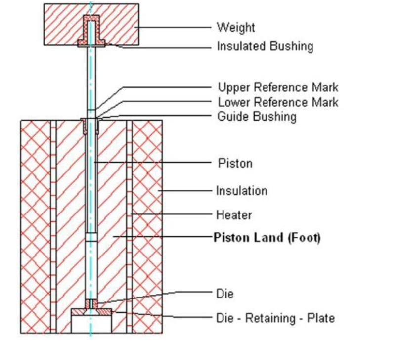 Dụng cụ này được áp dụng để xác định tốc độ đùn nhựa nhiệt dẻo nóng chảy bằng cách sử dụng một máy đo ép đùn. Sau một thời gian làm nóng sơ bộ quy định, nhựa được đùn qua một khuôn với chiều dài và đường kính lỗ quy định trong các điều kiện quy định về nhiệt độ, tải trọng và vị trí pít-tông trong thùng.