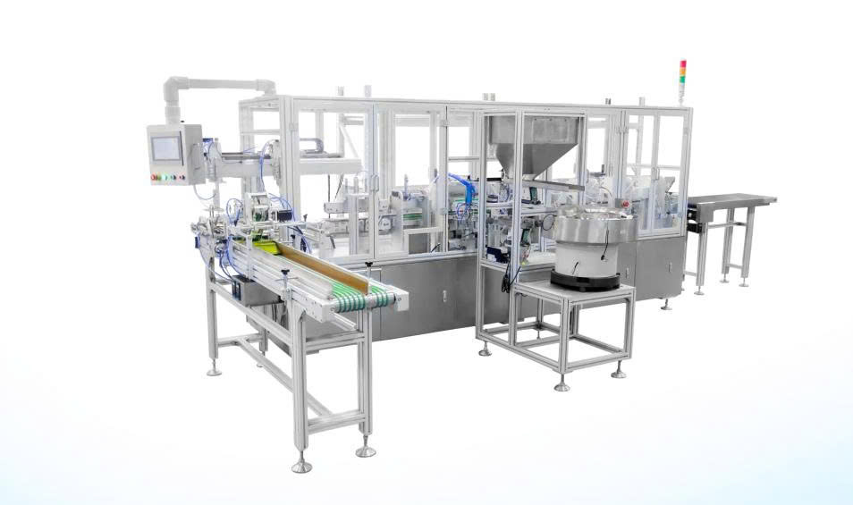 Vận hành tự động hoàn toàn: tách túi, cắt góc, lắp vòi và hàn nhiệt theo cơ chế tuyến tính một kênh.