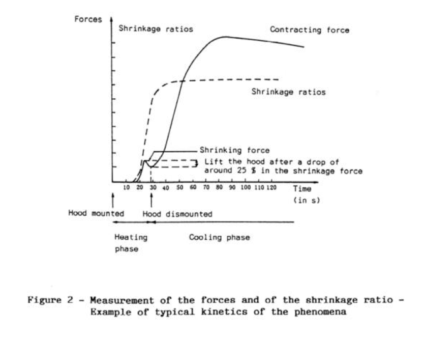 Thiết bị thử nghiệm này sử dụng nguyên lý gia nhiệt bằng khí để kết nối mẫu thử với cảm biến lực căng và cảm biến dịch chuyển. Sau khi đạt đến lực co rút tối đa, mẫu được đặt trong môi trường thử nghiệm bên ngoài với nhiệt độ môi trường 23°C ± 2°C để làm nguội. Thiết bị liên tục ghi lại nhiệt độ tham chiếu, lực co rút và độ dịch chuyển. Dữ liệu được ghi lại có thể được sử dụng để xác định các điều kiện co rút tối ưu cho màng.